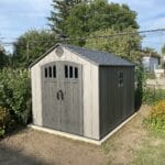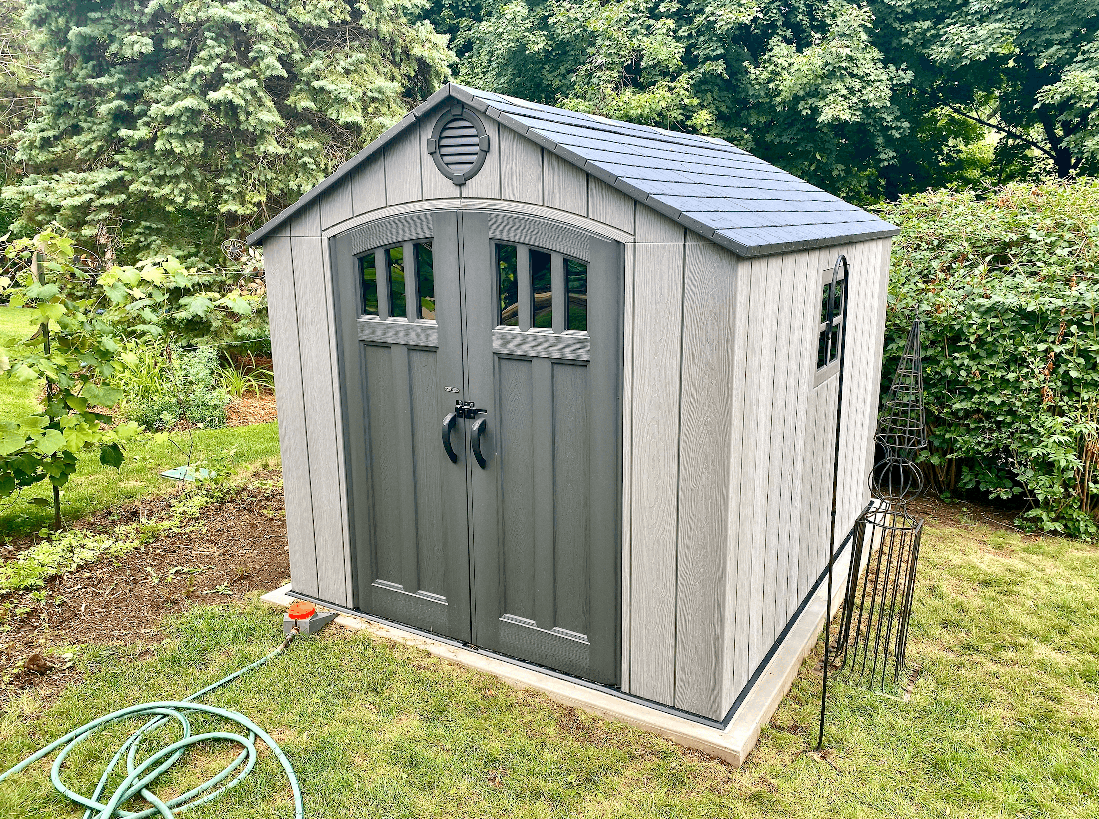 This Lifetime® 8 ft. x 10 ft. shed is more than just a place to store your tools and equipment; it’s an attractive addition to your backyard landscape. The shed combines quality materials with innovative design, offering a storage solution that maximizes storage potential. It combines superior value and the ability to withstand nature’s day-to-day abuse. It has double-wall high-density polyethylene (HDPE) panels with steel wall support. Heavy-duty steel trusses make this shed structurally sound for everyday use. It features screened vents for airflow. It is UV-protected, stain-resistant, and rust resistant. Best of all, it will never need painting!