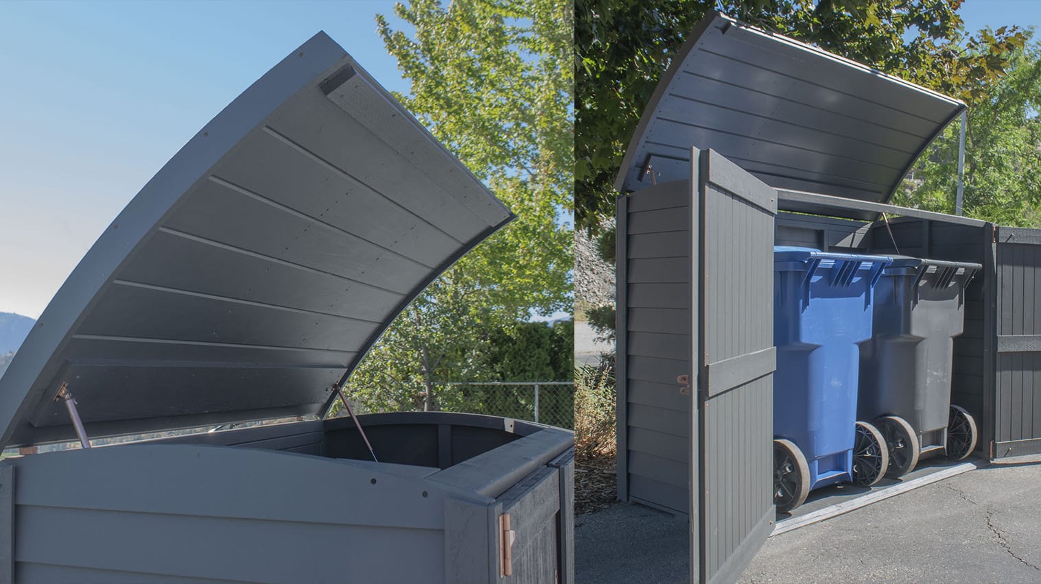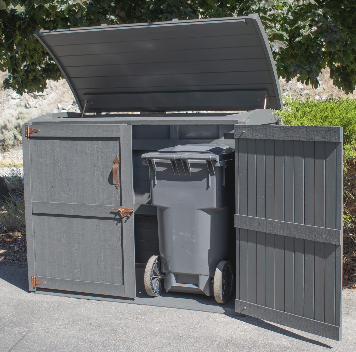 - Storage Capacity: 77 cu. ft. of functional storage for tools, equipment, and seasonal items. Holds two large 58 Gal. garbage/recycling containers