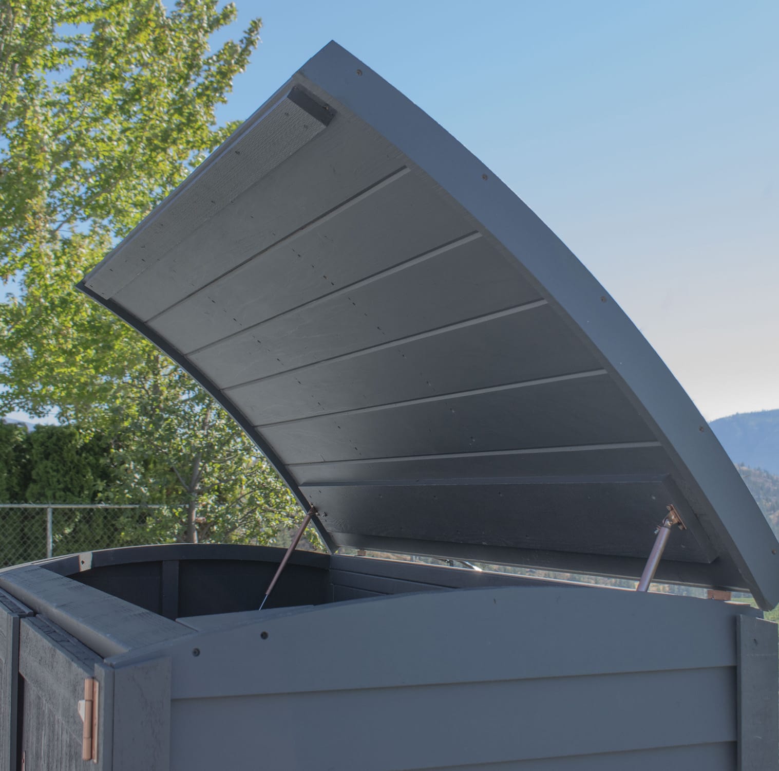 - Hydraulic Roof Design: The 6×3 Oscar Shed features a convenient curved lid equipped with gas shocks, providing hassle-free top access. This hydraulic roof design adds an extra layer of flexibility, allowing users to easily reach stored items, whether it’s garbage bins, gardening tools, or seasonal essentials. Combined with spacious cedar double doors, this innovative feature ensures maximum convenience and versatility for all your outdoor storage needs.