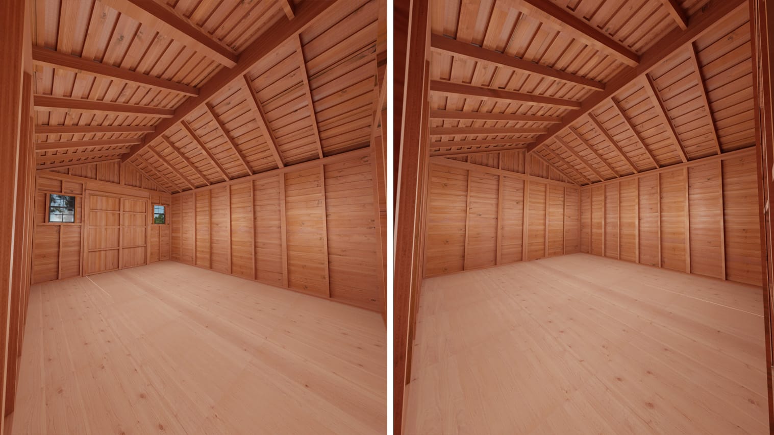 - Customizable Roofing and Finish Options: By default, the shed includes a Standard Plywood Roof, but you can upgrade to Metal or Western Red Cedar Shingle Roofing to suit your style and needs. The shed ships unstained, allowing you to customize the finish with a stain or paint that complements your outdoor space.