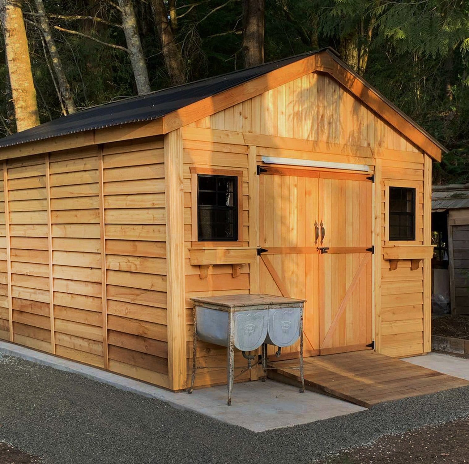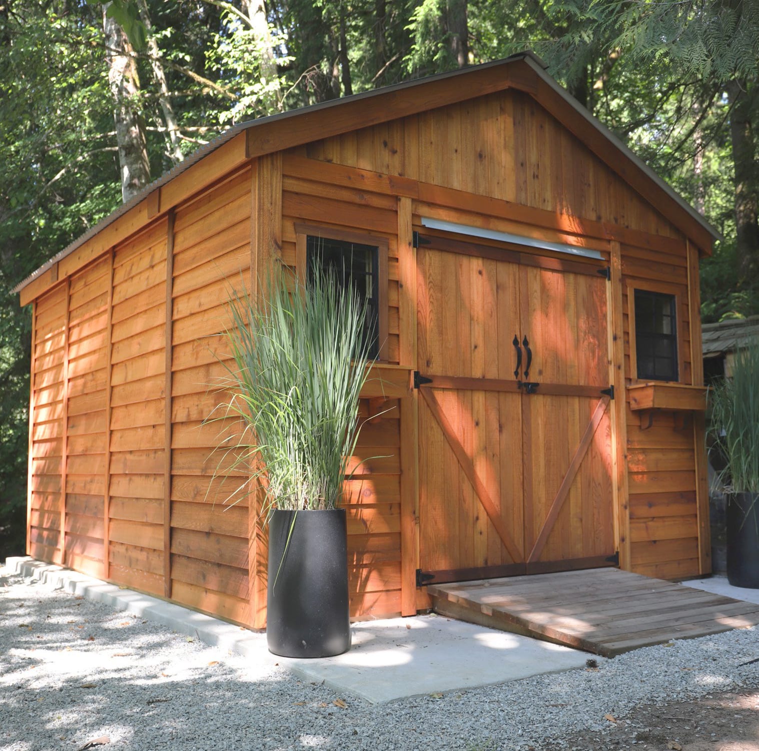 - Premium Western Red Cedar Construction: Built from sustainably sourced Western Red Cedar, this shed is naturally resistant to rot, decay, and insects, ensuring long-lasting durability and minimal maintenance. Its sturdy construction withstands the elements, making it a reliable and stylish addition to any outdoor space.