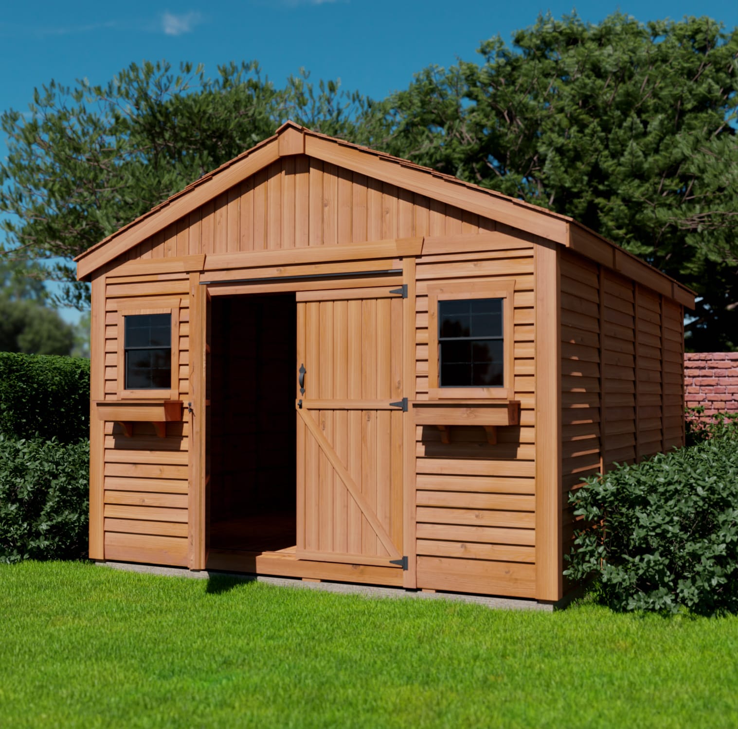 Maximize your outdoor storage with the 12×16 SpaceMaster Shed. With its spacious design, durable cedar construction, and customizable features, this shed is the perfect solution for organizing tools, equipment, and more while adding timeless beauty to your backyard.