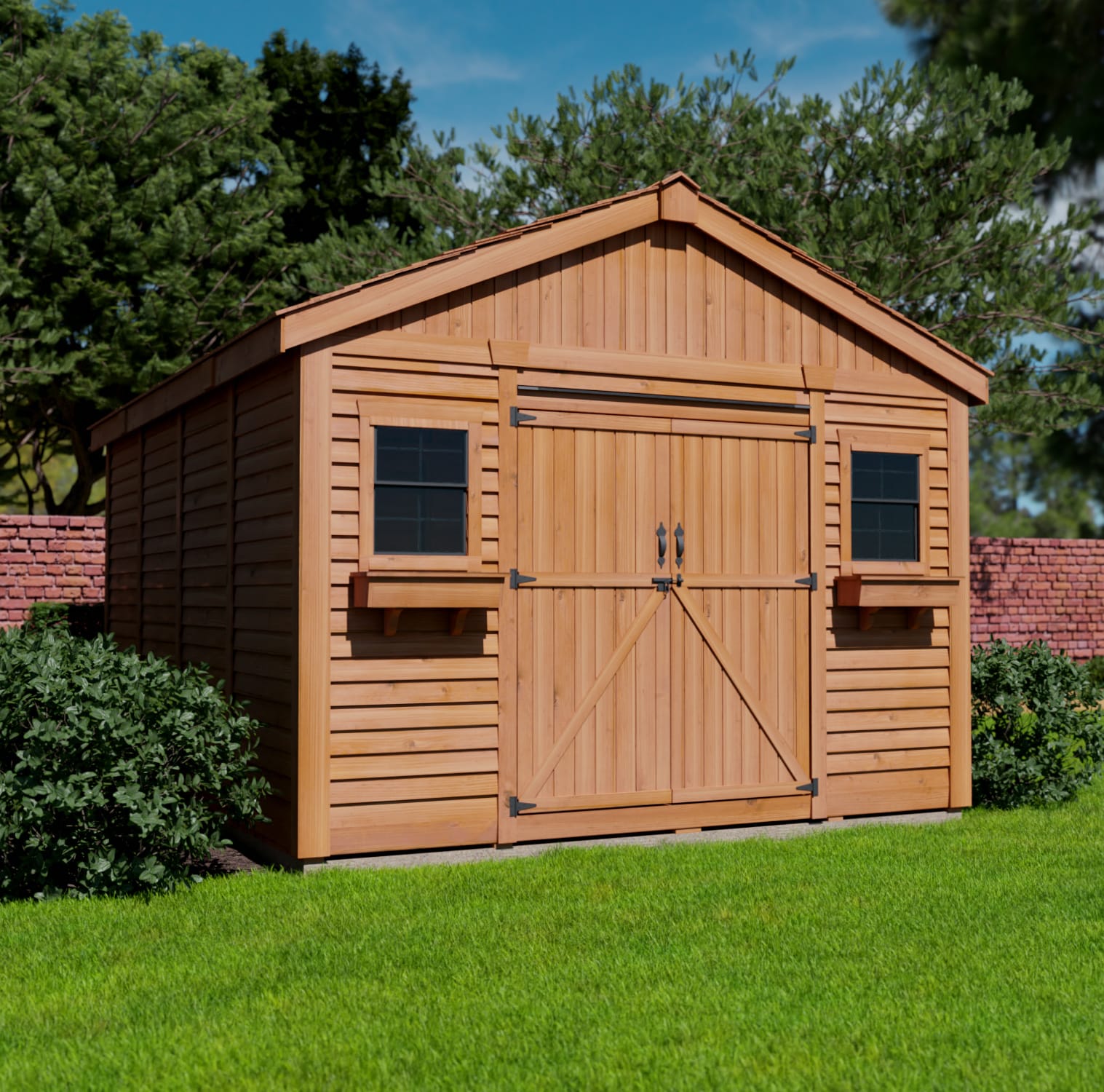 The 12×16 SpaceMaster Storage Shed offers 1152 cu. ft. of storage capacity, providing a spacious and secure solution for all your outdoor storage needs. Crafted from premium Western Red Cedar, this shed combines functionality, durability, and timeless design, ensuring it remains a standout feature in your backyard for years to come. - Generous Storage with Easy Access: With ample interior space, the SpaceMaster Shed is perfect for storing gardening tools, yard equipment, ride-on lawnmowers, bicycles, motorcycles, and seasonal supplies. The 62 in. wide double doors provide easy access, making it effortless to move large equipment in and out.