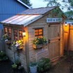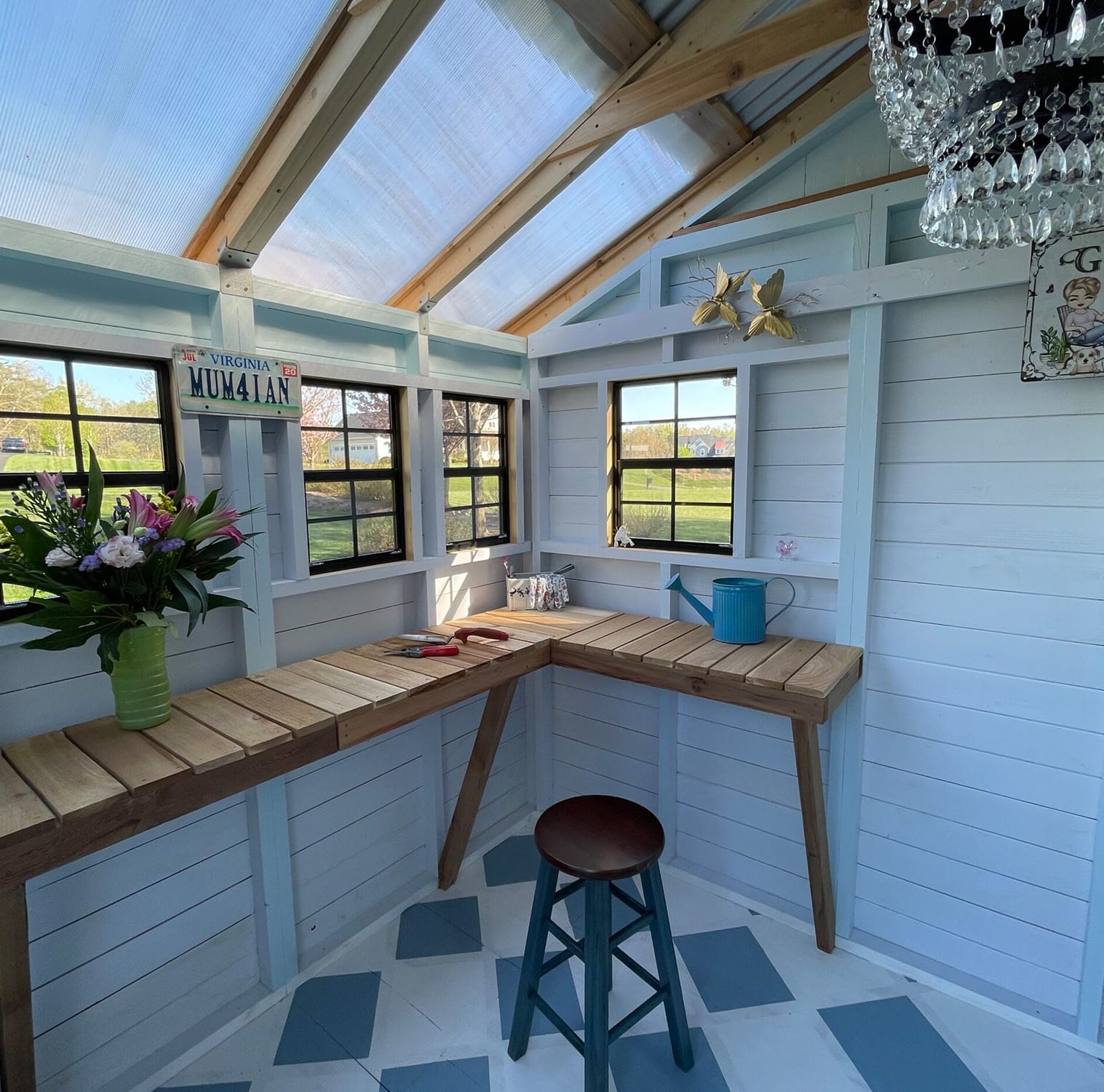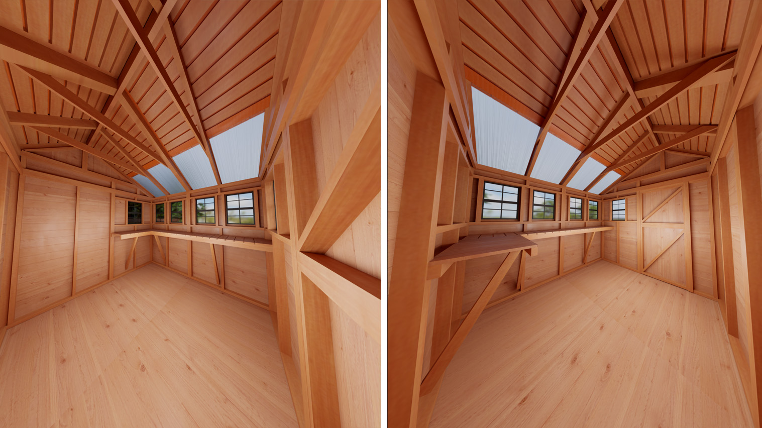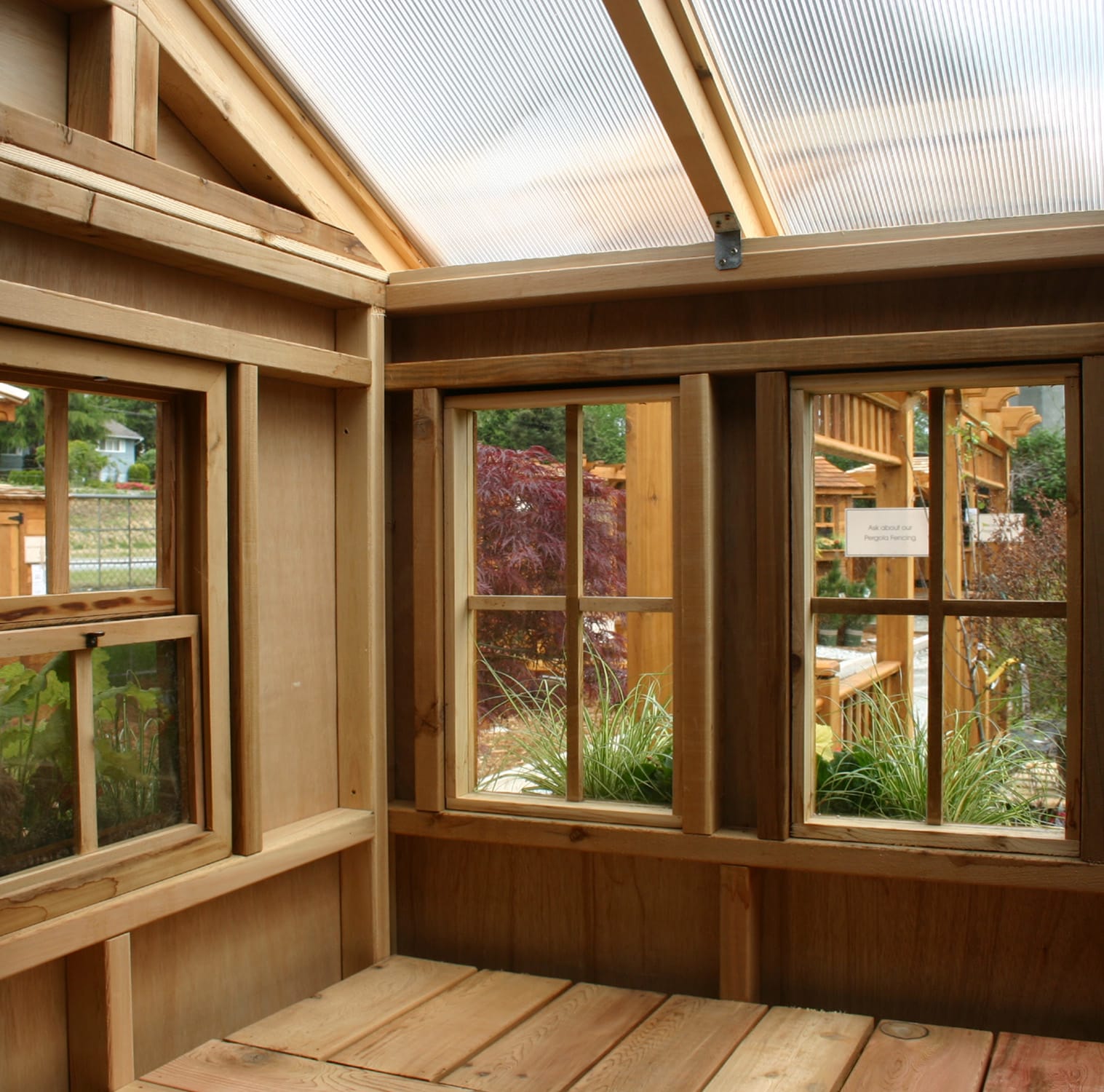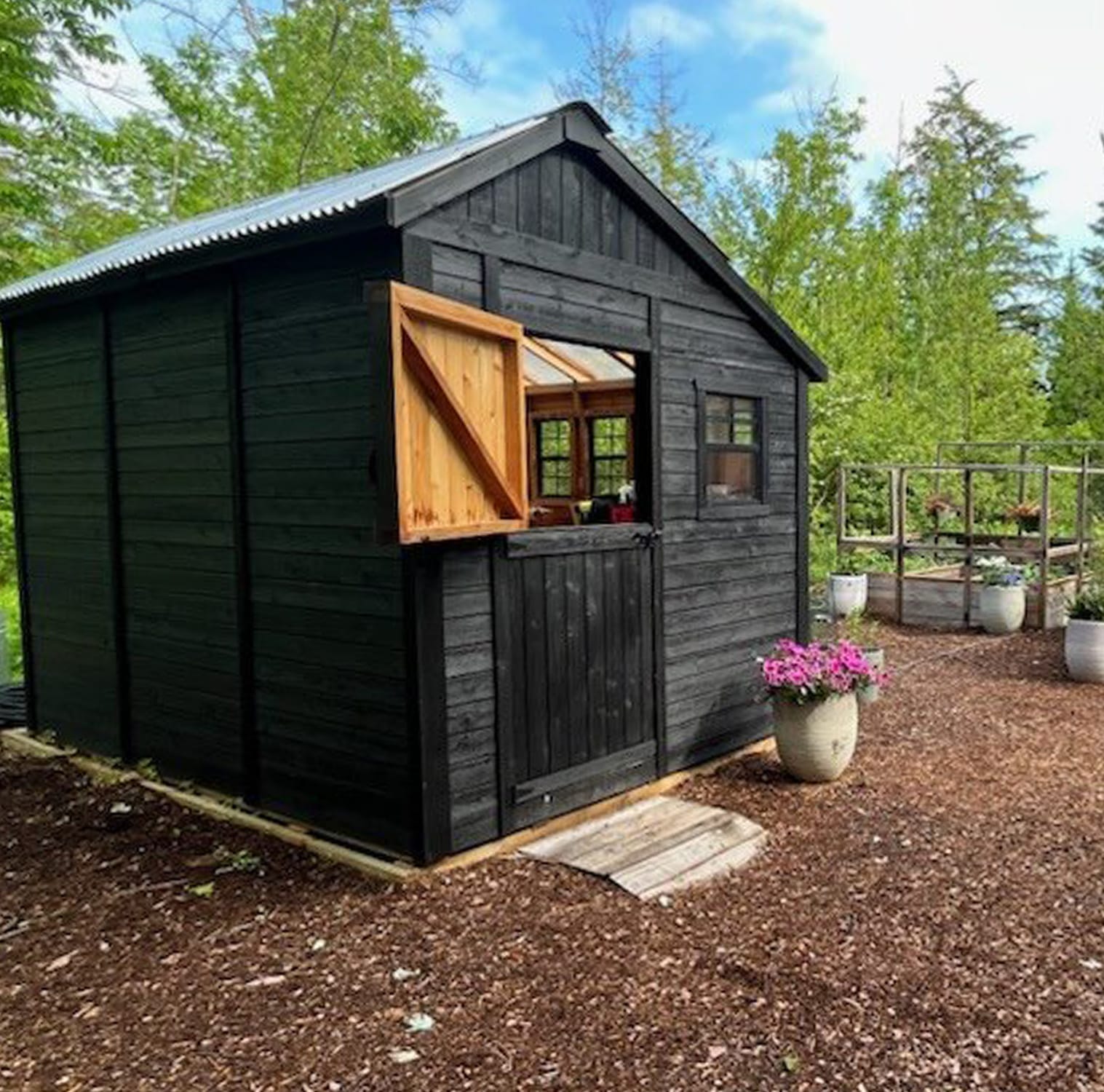 One side of the roof features a 6mm twin-wall Polygal panel, allowing filtered natural light to flow in—perfect for starting seedlings, growing vegetables, or working on projects. The other side is customizable with your choice of roofing materials, including a Standard Plywood Roof, Metal, or Western Red Cedar Shingle Panelized Roofing System. - Convenient Features for Gardening and More: