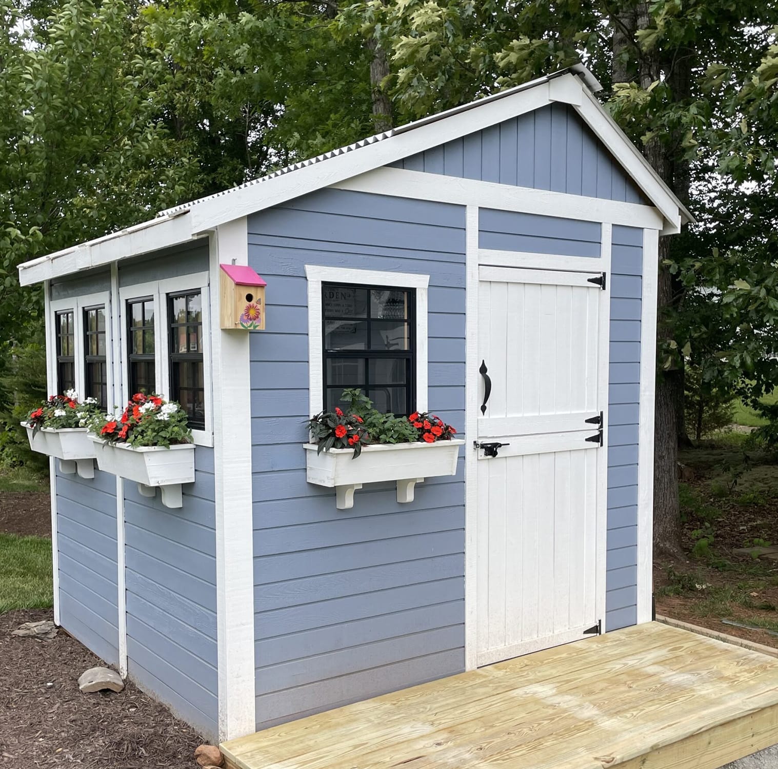 This shed includes a 16 in. deep L-shaped full-wall workbench, providing a dedicated workspace for gardening, hobbies, or storage. Four included flower boxes enhance its curbside appeal, making it as beautiful as it is functional.